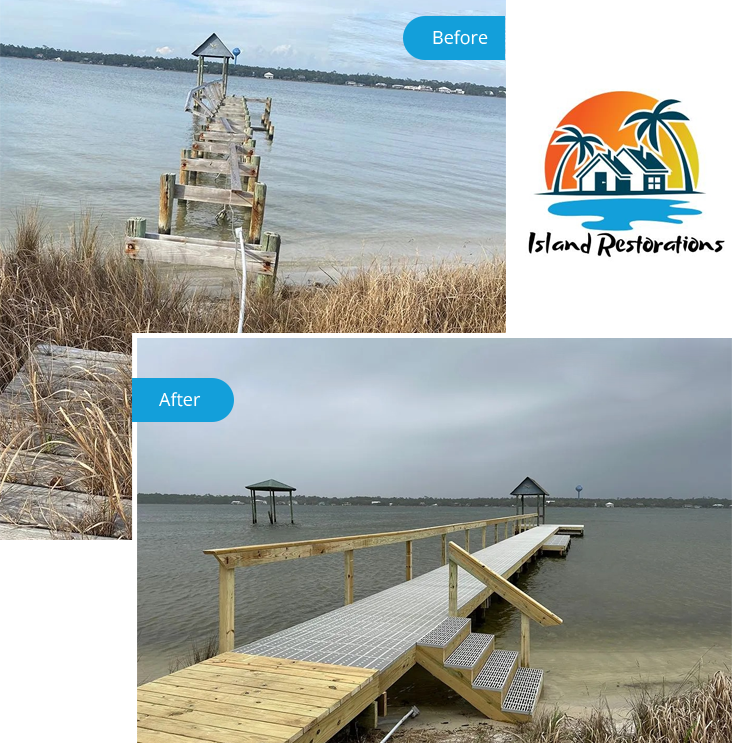 Island Restorations is a full service marine construction contractor located in Orange Beach, Al. Piers, pilings, seawalls, decks, boat recovery and land management . Licensed, insured and experienced.